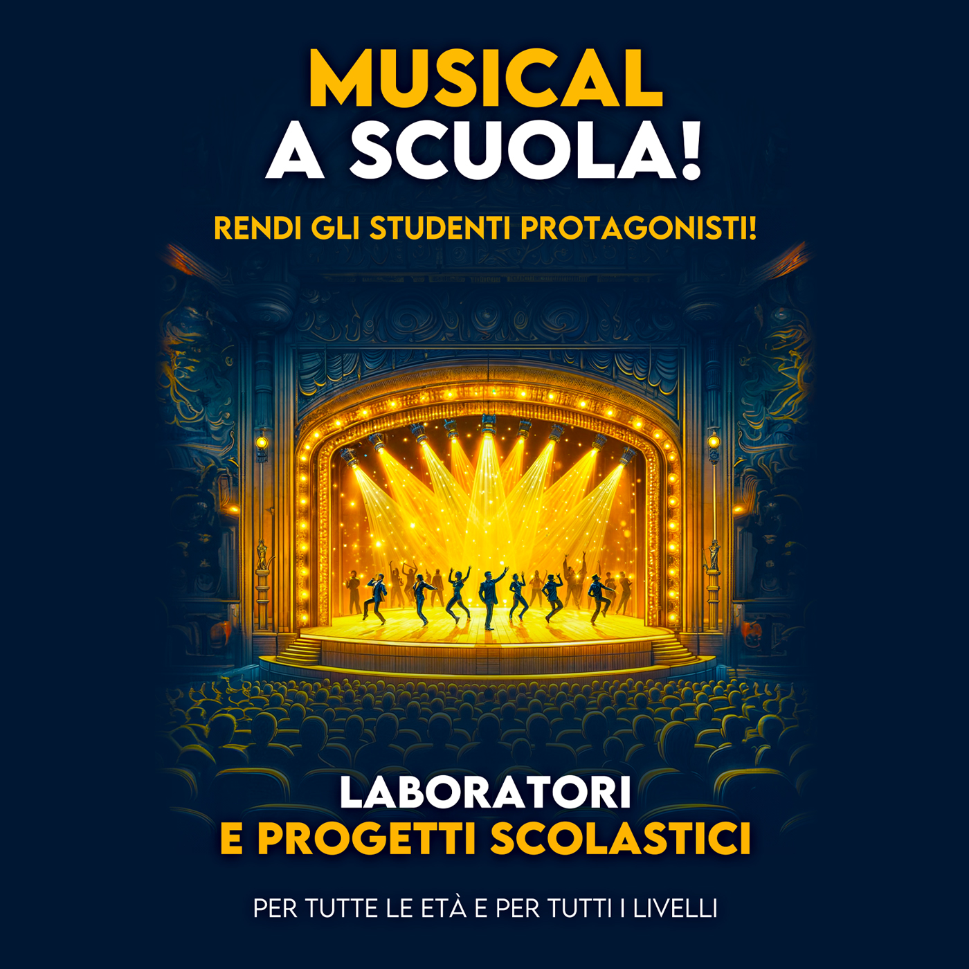 Presto aggiungeremo più informazioni su dove trovarci e come frequentare i nostri laboratori e corsi di musical! Intanto vi aspettiamo all’interno delle scuole primarie di primo e secondo grado con i nostri speciali progetti scolastici!